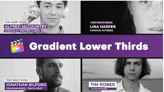 This Final Cut Pro template has flexible settings. You can use any color, gradient and advanced settings control of position, scale, length and opacity.